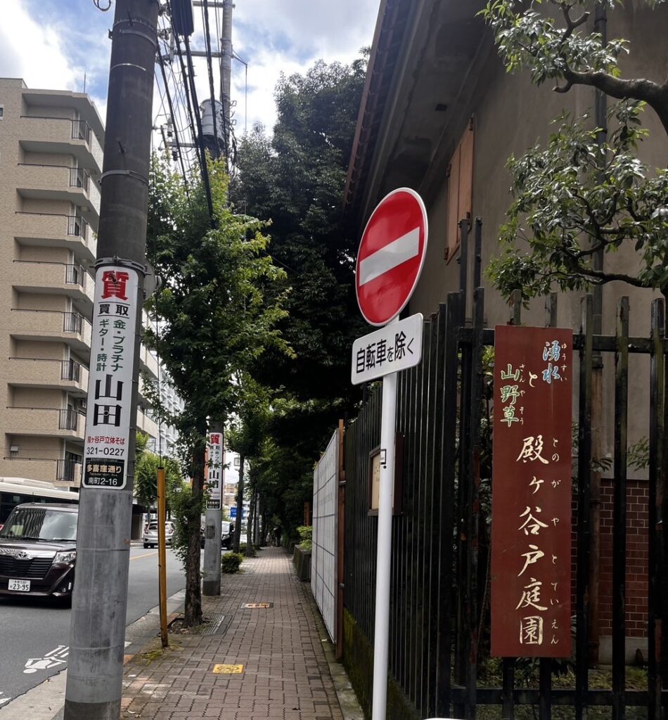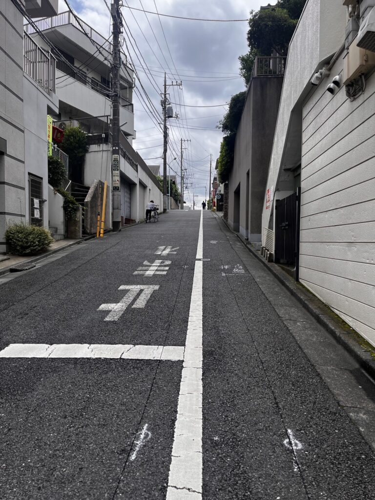 横断歩道を渡ったら、駅を背にして左手方向の坂を下っていきます。