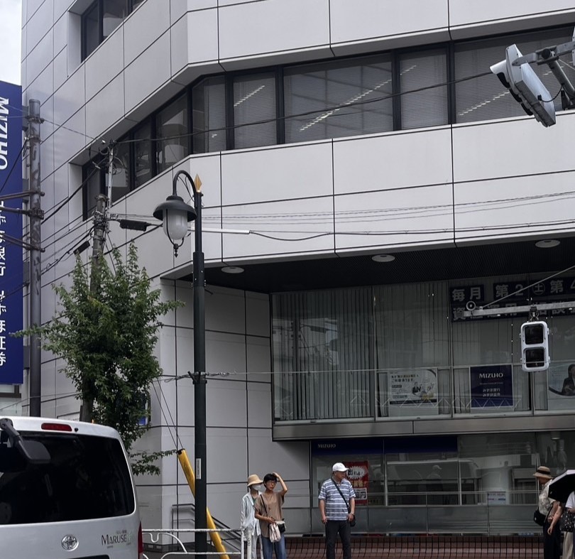 その横断歩道を【みずほ銀行】側に渡ってください。